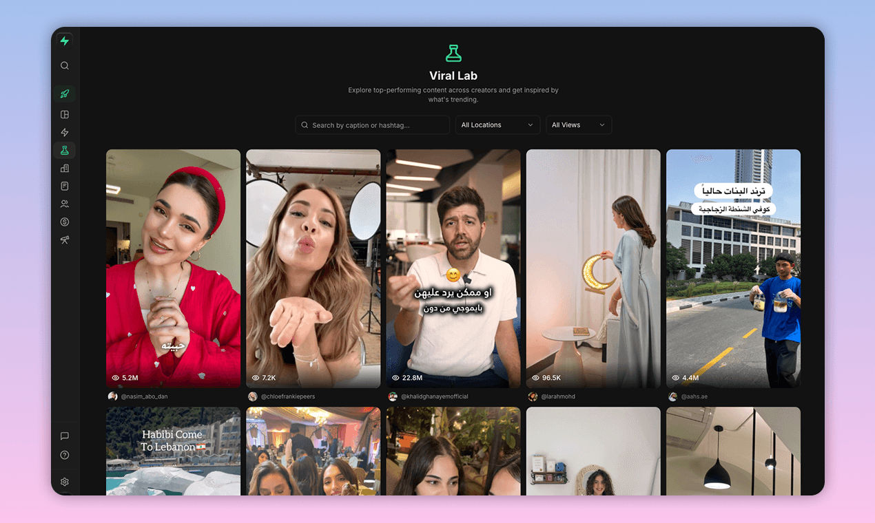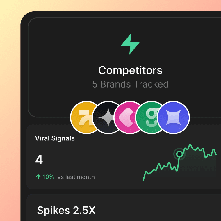 The overview dashboard aggregates all your tracked competitors into one view, so you can spot patterns, benchmark your performance, and identify content that's working across your niche before it becomes mainstream.